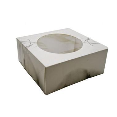 Kageæske hængslet låg S-Line L190xB190xH80mm pap med rude i PLA hvid/grå,100 stk/krt