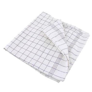 Kokkeviskestykke, 100 x 50cm, hvid, blå tern (10 stk)